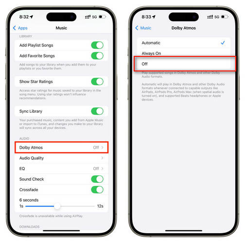 Step 3 Tap "Playback", then turn off the "Dolby Atmos".