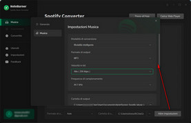 Nella finestra delle impostazioni di NoteBurner, seleziona il formato di output MP3 e il bit rate di 320kbps.